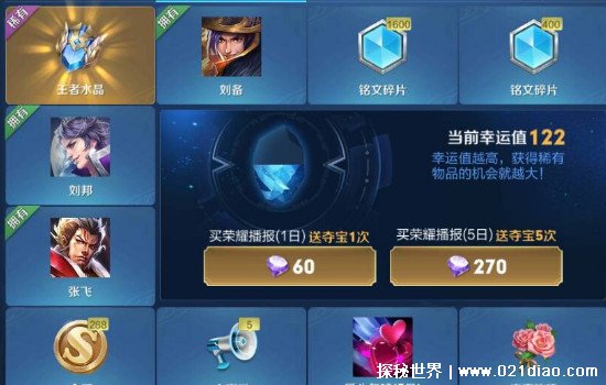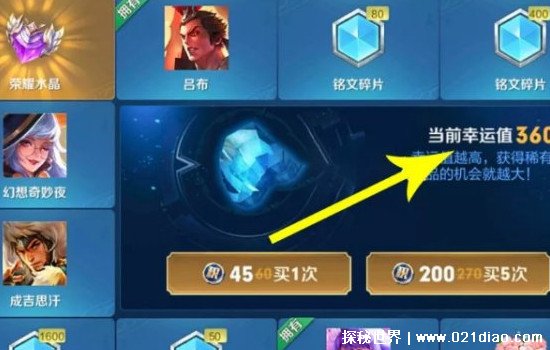 荣耀水晶的幸运值最高是360,也就是说当你达到360之后,再抽一次是一定可以获得荣耀水晶的。这需要你自己最少充值1944元。最多你需要充值2160元。具体的计算是这样的。