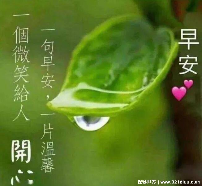 1、清晨的雨露清澈透明,多事的蝉儿热闹的鸣唱,欢快的喜鹊掩饰不住心中的喜悦,可人的小麻雀也叽叽喳喳,原来你醒了,轻轻的问候一声:早安!开心一整天。