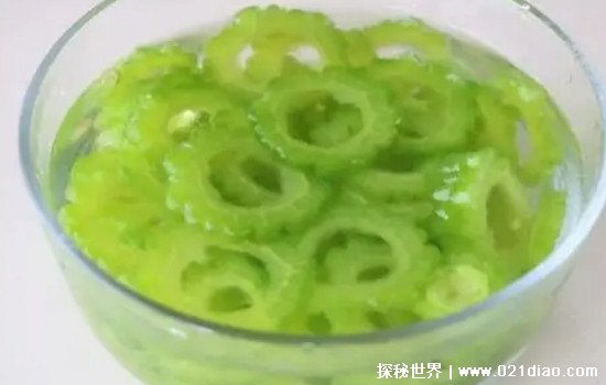 首先我们需要将苦瓜剖开成两半,将苦瓜中的苦瓜籽瓤子全部拿出来,然后使用你的刀背不断的敲击苦瓜上面凸起来的那些泡泡,这些泡泡中有着很多的苦水,但是在这里注意不要太用力,不然苦瓜可能就无法切成细丝了。然后就将这些苦瓜切成细丝,尽量切的细一些。然后再将切好的苦瓜丝放入清水中浸泡10分钟左右。