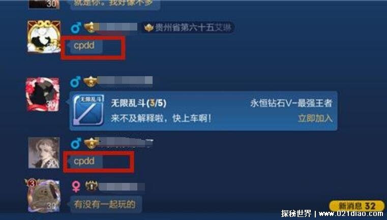 在网上经常会出现许多网络用语,经常玩游戏的小伙伴应该都会在游戏大厅里看到“cpdd”这个词,有些小伙伴不知道cpdd是什么意思,cp就是英语“coiple”的简写,是一对,对象的意思,而dd“滴滴”的拼音缩写,是一个拟声词,一般就是指“联系”的意思,cpdd连起来的意思就是想要处对象的说一声。