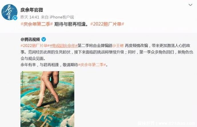 从鹅厂的影片单中可以看到,《庆余年2》确定于2022年播出。在庆余年第二季的发布会上,大批的原班人马出席现场,以及金牌编剧的再次加持,也让观众非常期待,同时也透露了将会有大量的新boss登场,和角色的变化。随后张若昀发博称一些主演依然还在,继续跟随这庆余年2,这下终于让大家悬着的心落地。