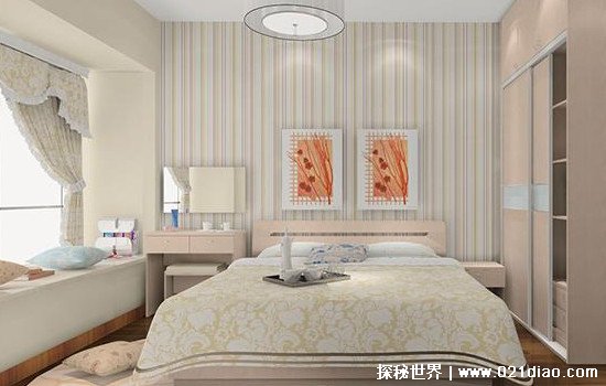 还有一点就是床最好是靠墙的,因为靠墙有着靠山的意思。这就可以让你夫妻之间的感情十分稳定,就像山一样稳定。还有的人喜欢将床靠在窗户上,其实这个摆放并不是特别好,靠近窗户可以,毕竟有利于通风,身体也舒适,但是最好还是不要紧挨着窗户。