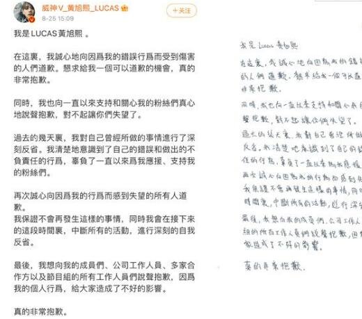 黄旭熙发布的手写道歉信,也相当于是变相承认的自己的行为。因此,在追星的同时,也要认清一个人他的流言是哪些方面的,有没有塌房的迹象,追星只是追求自己的一种喜欢,粉丝也不要妄想与明星发生特别的关系,各自安好即可。