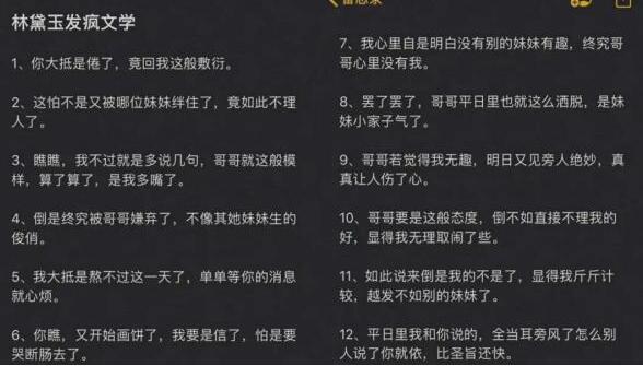 看过《红楼梦》的小伙伴们一定都对林黛玉阴阳怪气的话语十分有印象,而最近网络上也有很多情侣相互之间玩起了林黛玉式的对话,因此小编就给大家收集了一些林黛玉阴阳怪气语录...