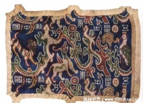 1995年,考古专家在新疆的尼雅遗址中挖掘出一块蜀地的织锦护臂,在这块长方形的织锦上绣着“五星出东方利中国”八个字,很多人根据字面意思理解为:五颗星出现在东方有利于中国,这不禁让人联想到中国的国旗五星红旗,因此有人认为这就是古代人穿越的证据。