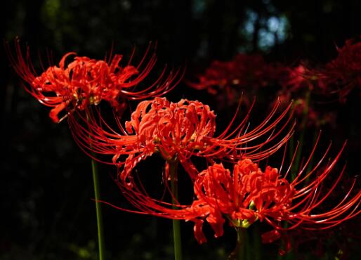 除此外,彼岸花还有一个传说,这种花原本是生长在阴间黄泉的路边,有一大片彼岸花海,也是阴间唯一的植物,代表着离地狱不远了。它们负责将亡魂引导各自的归属上,善者上天堂,恶人则下地狱。