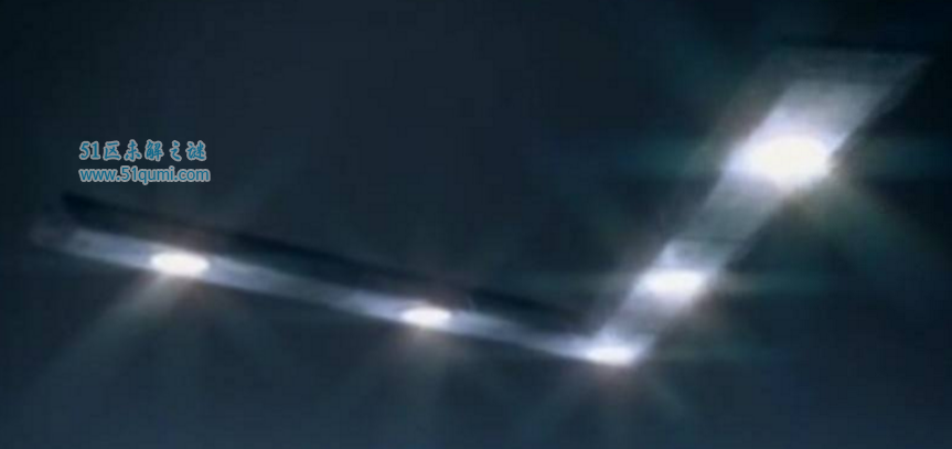 在1997年3月某天晚上,在美国亚利桑那州菲尼克斯及附近地区的700多名民众都曾亲眼目击到了菲尼克斯南部山脉上空有五个排列成V字形的白色发光点正在缓缓飞行中,而且非常大超出想象据说有1800米。