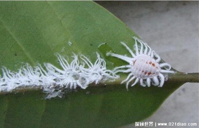 棉垫蚧虫因为身上生长这棉垫一样的鳞片而得名,这种昆虫不存在交配问题,因为它们是自体交配繁衍后代,这在动物界中的雌雄同体中也十分的罕见,但大自然就是这么奇怪。